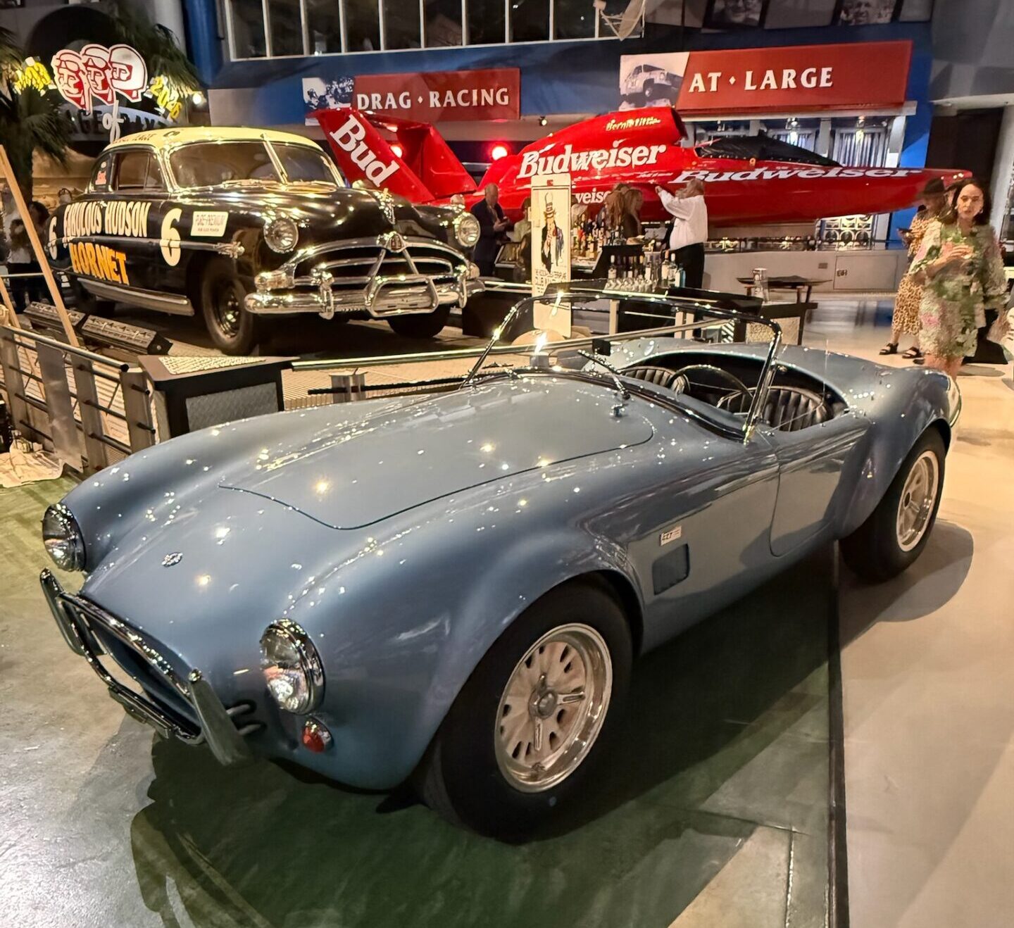 Mike Debbie Rogers brought their narrow-bodied Cobra which is 1 of 32 ever made and it was a real spectacle. People were freaking out, taking photos with John since considering his connection to Shelby American.